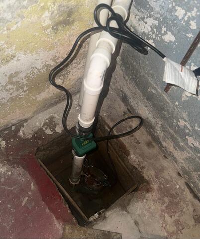 The existing pump was sitting in an open mop bucket that was dropped in a hole in the basement. The new TripleSafe Sump Pump will keep this basement dry while also protecting from radon (since it is a closed system).