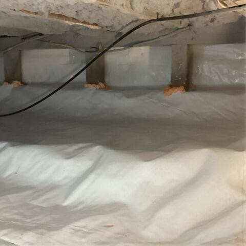 A homeowner in Plymouth, MA gave us a call because their crawl space had messy insulation cluttering it and they wanted to have a vapor barrier installed as well. Our inspector, Steve, went to the home to take a look at the crawl space and drew up a solution to clean it up and add a vapor barrier. Our Foreman, Tomas, and his crew first removed all debris and messy insulation from the space, then they laid down our drainage matting over the dirt floor. With the drainage matting in place, they were then able to fully encapsulate the crawl space with our CleanSpace vapor barrier. CleanSpace is a very strong material that seals off the space from excessive moisture and being impacted by outdoor weather conditions. Now the homeowner can feel much better about their crawl space!