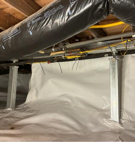 This homeowner in Coventry, RI called us with some concerns about their crawl space. They assumed it would benefit from being encapsulated but also could feel the floor above the crawl space weakening due to a lack of support from below. Our inspector, Trevor, went out to the home to take a look at the crawl space and he drew up a well-rounded solution. On installation day, our foreman, Damien, and his crew removed the debris that was in the space and then installed our SmartJack Stabilizing System to add long-lasting support to the floor above. The crew also fully encapsulated the crawl space with our CleanSpace vapor barrier and installed our SaniDry Sedona dehumidifier to keep humidity low year-round. Now the homeowner no longer has to worry about the crawl space beneath their home!
