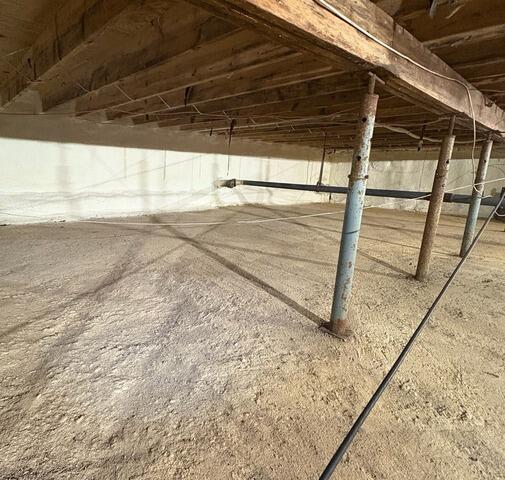 This crawl space in Harwich, MA needed a stabilization job for the floor above. It was sagging down due to the supporting wood structure rotting. To solve the humidity and structural issue, we installed SmartJack floor support systems under the sagging floor and fully encapsulated the crawl space with CleanSpace vapor barrier! Now, the floor is stable, and the crawl space isn't humid.
