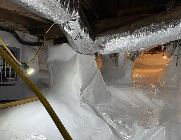 After agreeing, our production team cleaned out any old debris before the installation. Then, they installed SmartJacks below the weakened floor beam to raise it back up. After, they carefully rolled out CleanSpace onto the floor to cover every square foot of it. Lastly, SilverGlo was added into the walls to help maintain a constant temperature throughout the year. Once the transformation was complete, the homeowner was static to not worry about his floor anymore!!