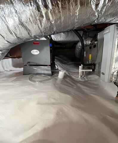 This customer in Hopkinton, MA was looking to move into this home but was advised that the crawl space beneath it should be encapsulated and insulated first, so they gave us a call. On installation day, our crew first removed any debris that was in the space and then sprayed our Mold-X2 spray to clean and prevent mold going forward. Then they laid down drainage matting over the dirt floor of the crawl space to allow any water to flow under and out instead of pooling inside. They insulated the walls of the space with our SilverGlo wall insulation which regulates temperature much more efficiently than fiberglass insulation and it doesn't deteriorate over time. Then the crew was able to fully encapsulate the crawl space with our CleanSpace vapor barrier. They lastly installed our SaniDry Sedona dehumidifier to keep humidity low. Now the customer can move into the home feeling confident about the conditions of the crawl space!