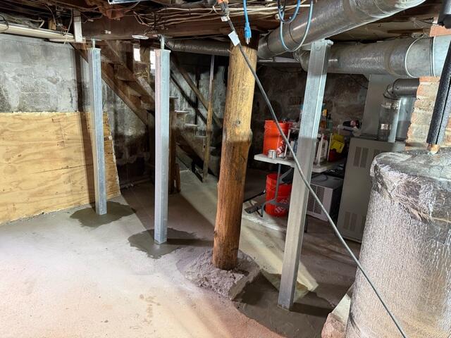 This homeowner in Uxbridge, MA gave us a call because the wooden support beam across their basement ceiling was starting to fail. The support beam failing was causing the floors in the home to slope and creak.To fix this, our crew installed five of our SmartJack Stabilizers along the wooden beam. SmartJacks are made of galvanized steel and add support to a failing structure, they can even be adjusted to reverse the floor sloping that has already occurred. Now the homeowner won't have to hear creaky floors or worry about their home's structural integrity.